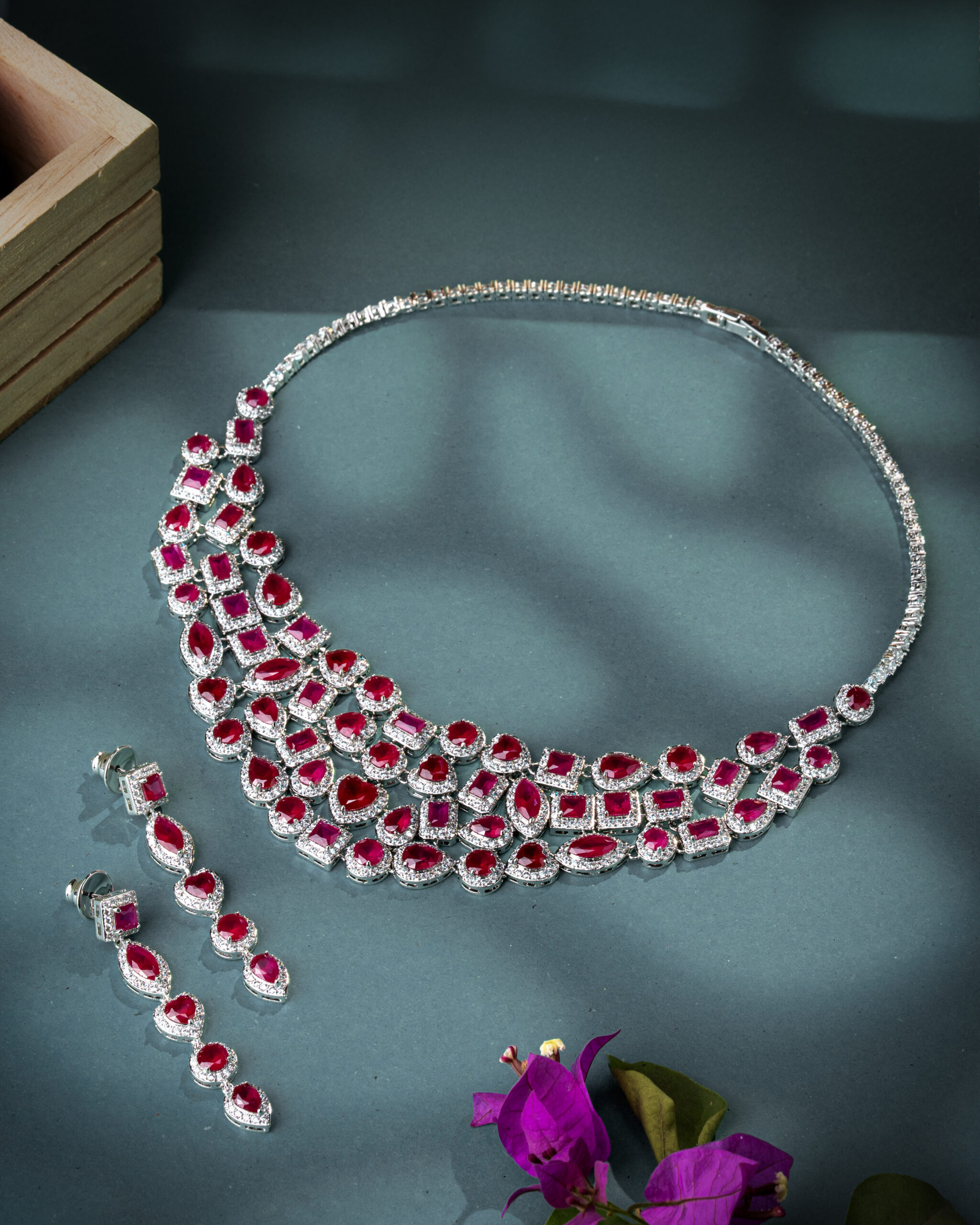 - Package Includes: 1 AD stone necklace with matching earrings