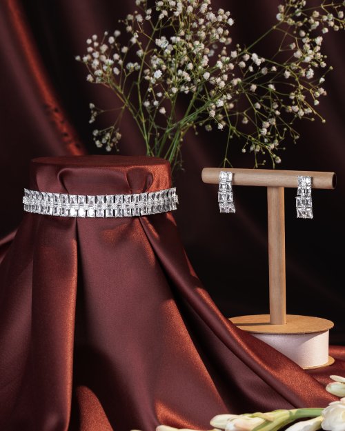 - Design: Elegant choker necklace with matching earrings