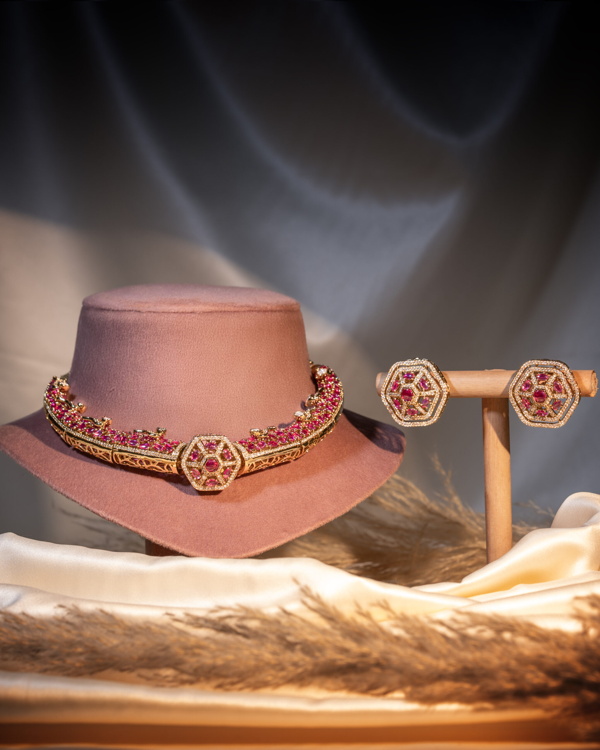 - Package Includes: 1 Rajwadi pink royal choker with 1 pair of matching earrings