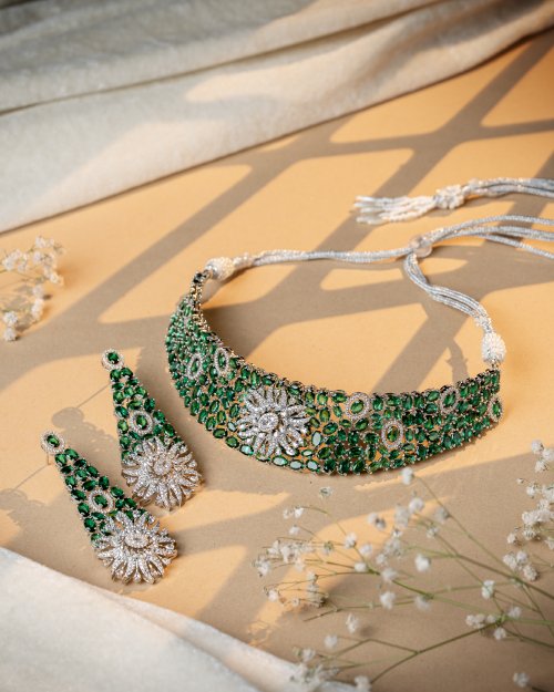 The exquisite Verdant Glow AD Choker Set, crafted to bring luxury, sparkle, and timeless elegance to your celebrations.